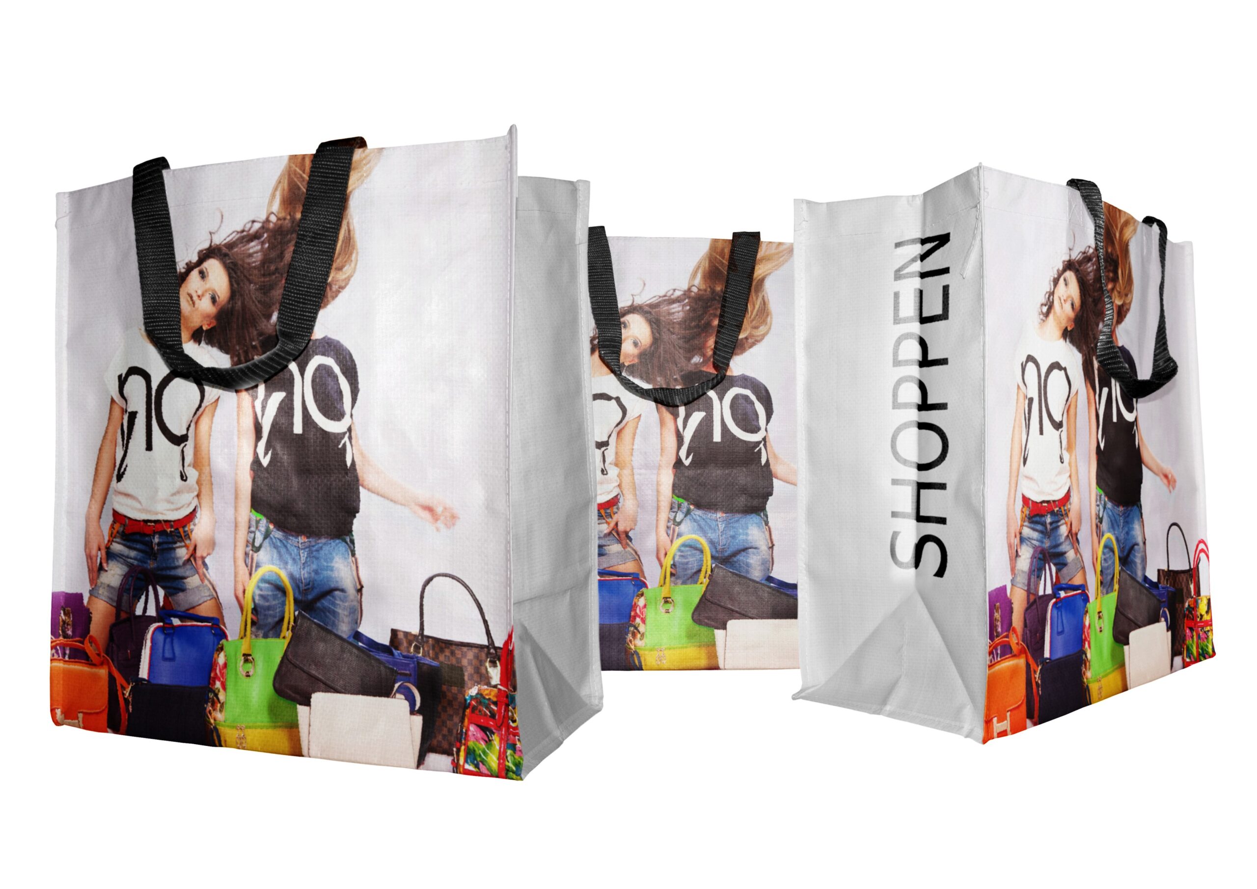 Größe: individuell in BxH+T Qualität: individuell in g/m² nach Laminierung Finish: Matt oder GlanzHenkel: 1 oder 2 Paar Nylon, kurz oder lang, inkl. X-NahtExtras: Einlegeboden, Innentasche, Klett-/Reißverschluß uvm.unbedruckt oder bedruckt mit Ihrem Logo/Foto/Text